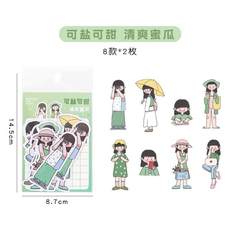 緑を基調とした梅雨から夏にかけての女の子を描いたシール。