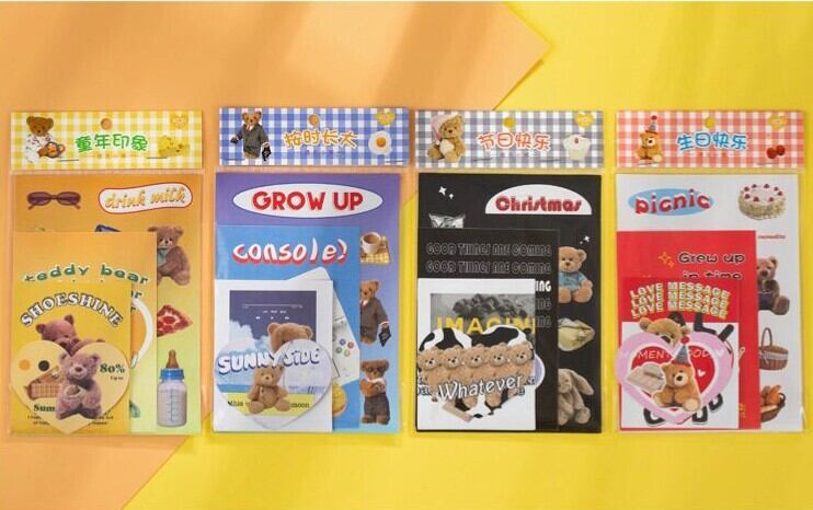 くま系シール&カード 青の夏をイメージしたスポーティーなデザイン やんちゃなテディベアのシールとカード ノートパソコンやペンケースのデコ