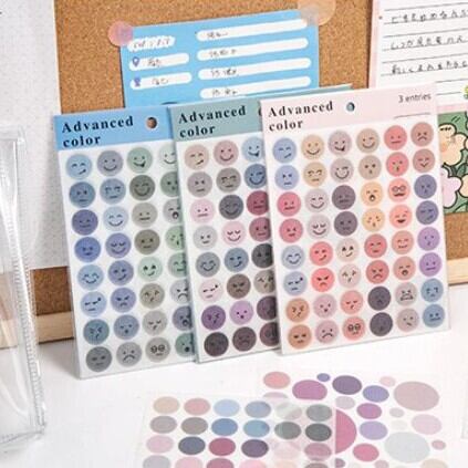 表情と無地の丸型シールにやや大型の丸シールのセット。