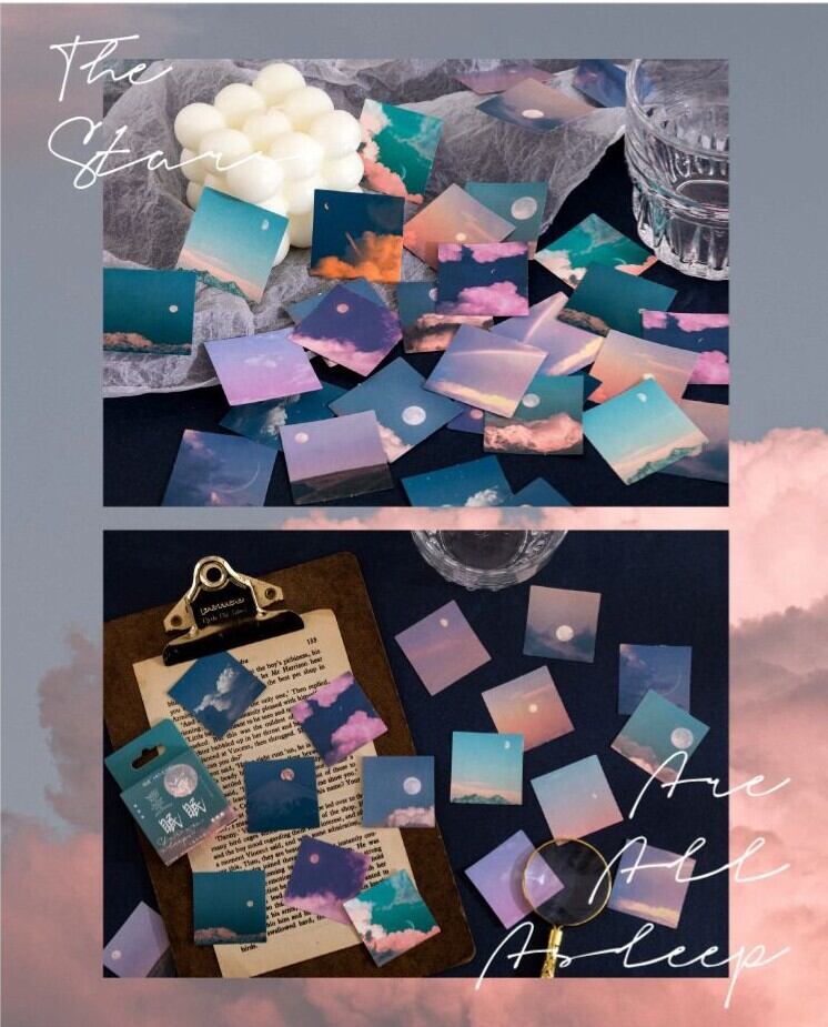 デコレーション系シール ペールトーン 夕暮れに輝くきれいな月のフレークシール ロマンティックな日のムードのある手帳素材