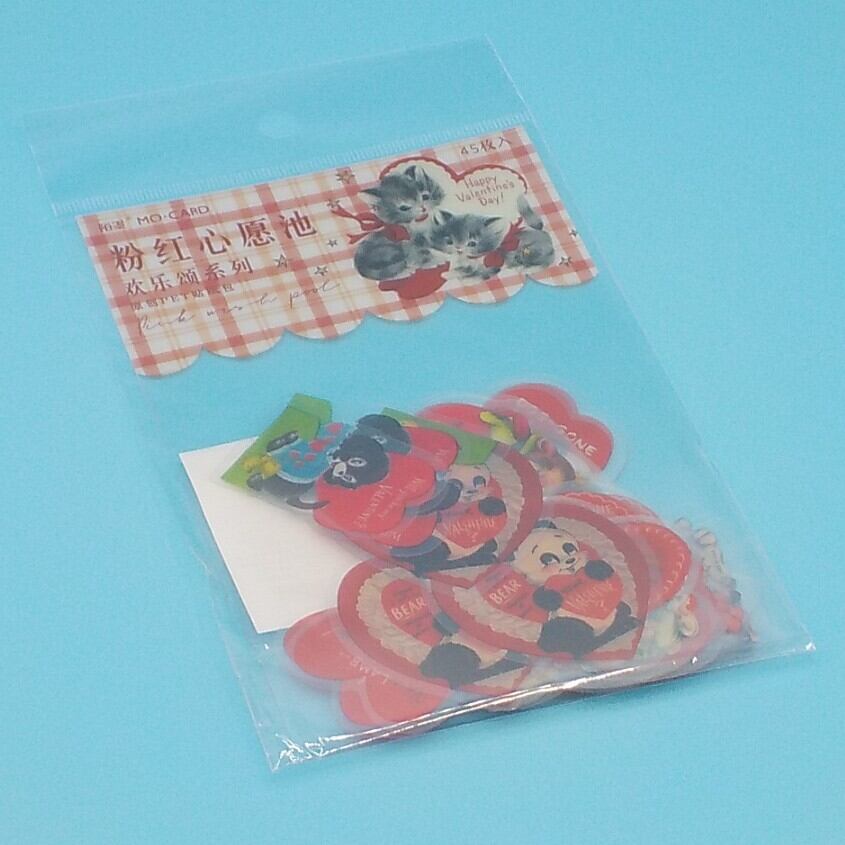 ビンテージ系シール ハートの背景に動物と女の子のフレークシール かわいいレトロアニマル 猫 日記の定番