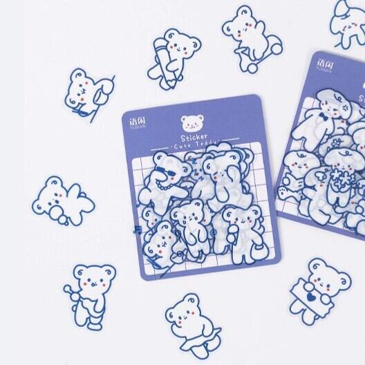 くま系シール ポーズ色々可愛いしろくまのPETフレークシール40枚 水に強いので、スマホデコやヘルメットにも