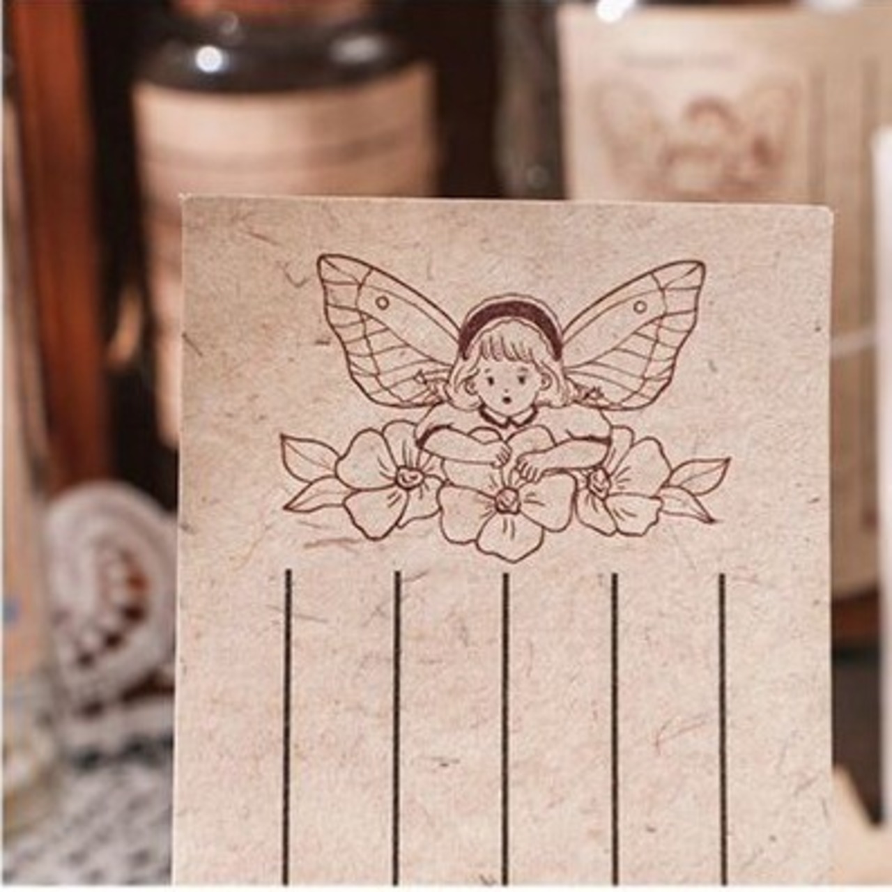 ビンテージ系メモ用紙 妖精の女の子がメインの箱入りメモ用紙 マッチ箱タイプ ハンドメイドの素材紙やTODOリストなどに
