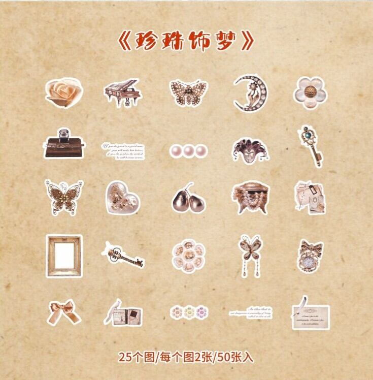 ビンテージ系シール 鍵やピアノなど古物アクセサリを模したおしゃれなフレークシール 手帳や日記のコラージュに