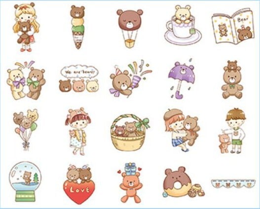 くま系シール ゆめかわいいテディベアやドーナツ、気球など、くまグッズのフレークシール お子様のご褒美などに