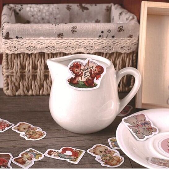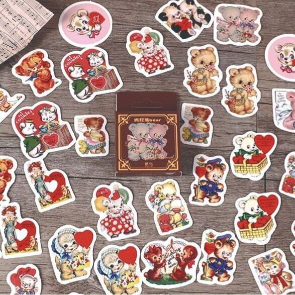 くま系シール 海外 レトロアニマル ビンテージ 女の子 ハート かわいいフレークシール カレンダーやスケジュール帳の装飾に