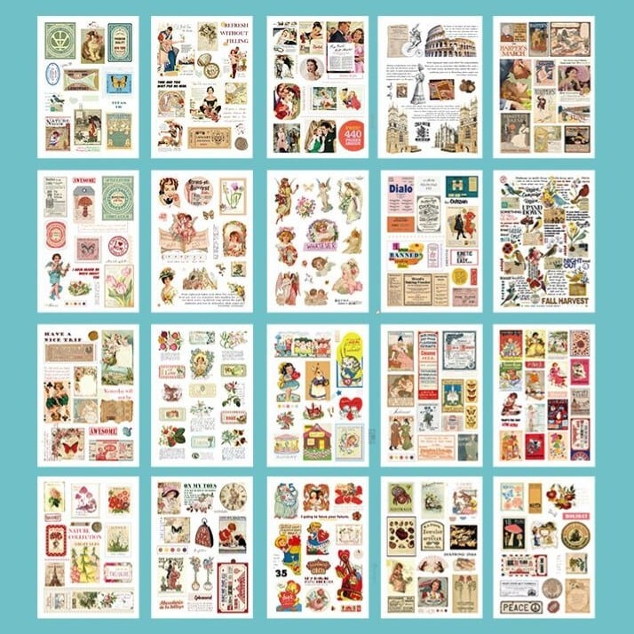 ビンテージ系シール 海外 アメリカン 広告 レトロアニマル 中世 建築物などバラエティに富んだシールブック ジャーナルやスマホデコ、日記のコラージュに
