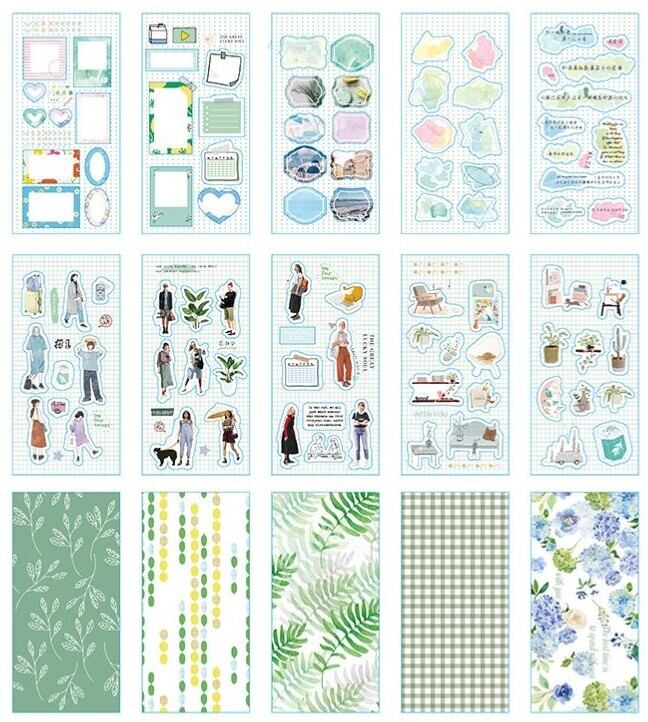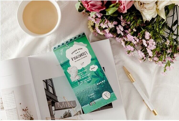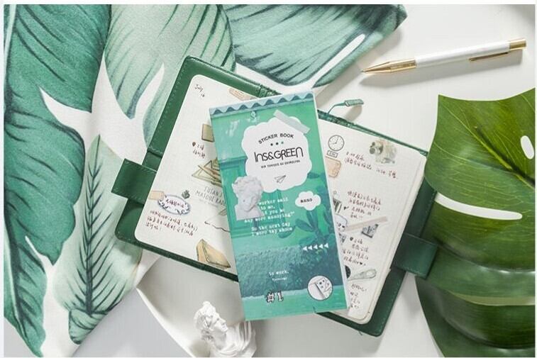 デコレーション系シール グリーン 海外 INS 爽やかさを彩る緑のシールブック ラベル 背景 写真 POP おしゃれ インスタグラムなどのSNSや通常のコラージュに