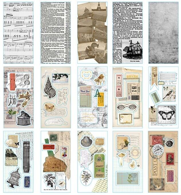 ビンテージ系シール 海外 ボタニカル クラシック 英文 写真 楽譜 ハンディサイズのシールブック ジャンクジャーナルや手帳のコラージュに