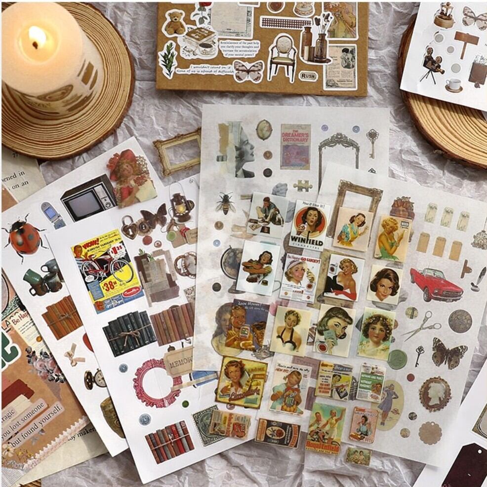 ビンテージ系シール 3種類の素材 和紙 PVC アメリカン 広告 ポストカードサイズのシールブック ジャンクジャーナルや各種コラージュに