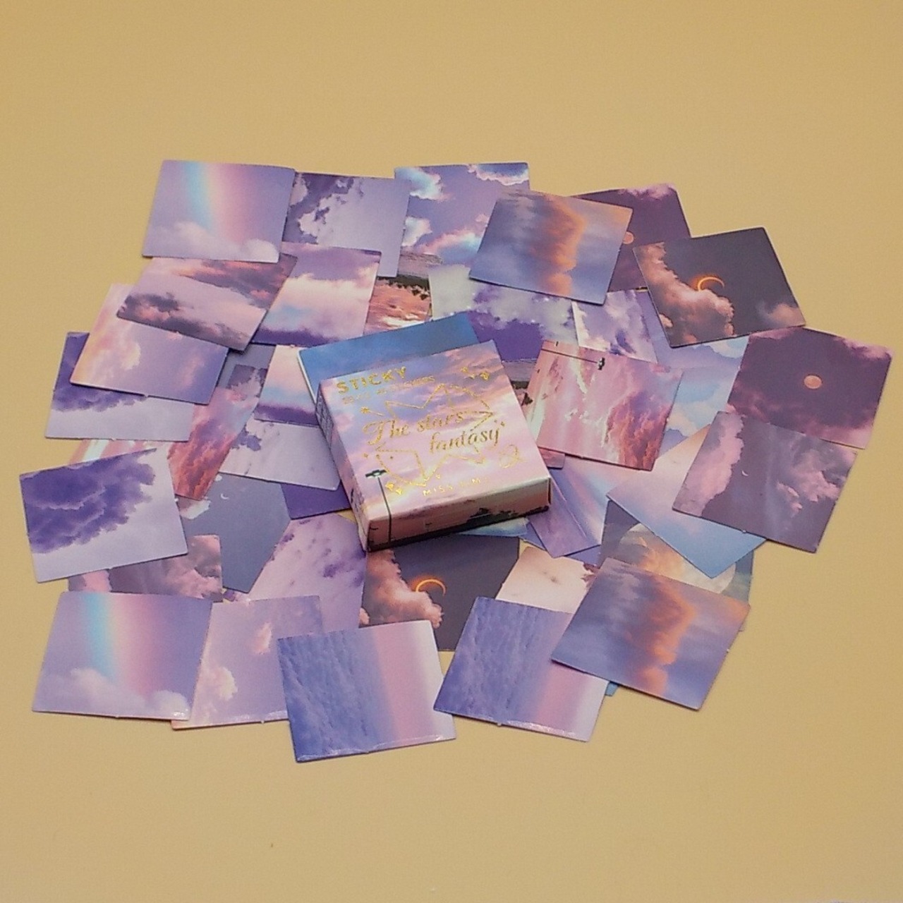 デコレーション系シール 海外 風景 パープル イラスト 空と雲 おしゃれ 夕暮れ 紫色に染まった空と雲のフレークシール INS SNS 手帳やスケジュール帳のコラージュに