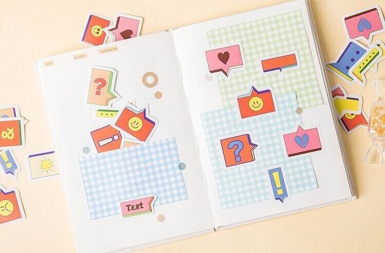 デコレーション系シール 海外 ハート はてな 吹き出し びっくり 三点リーダ 気持ちを表現するフレークシール トレカや写真のデコに