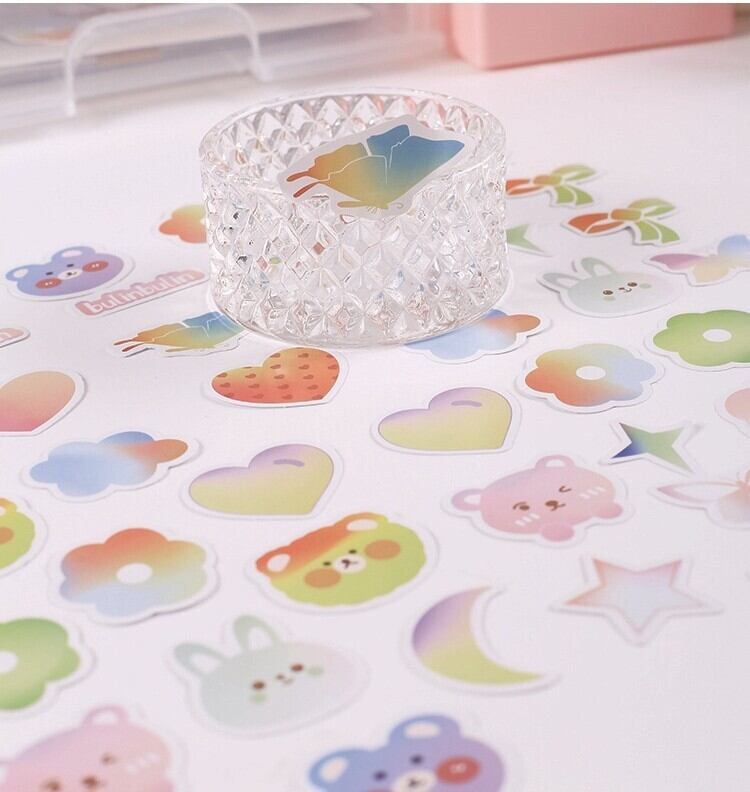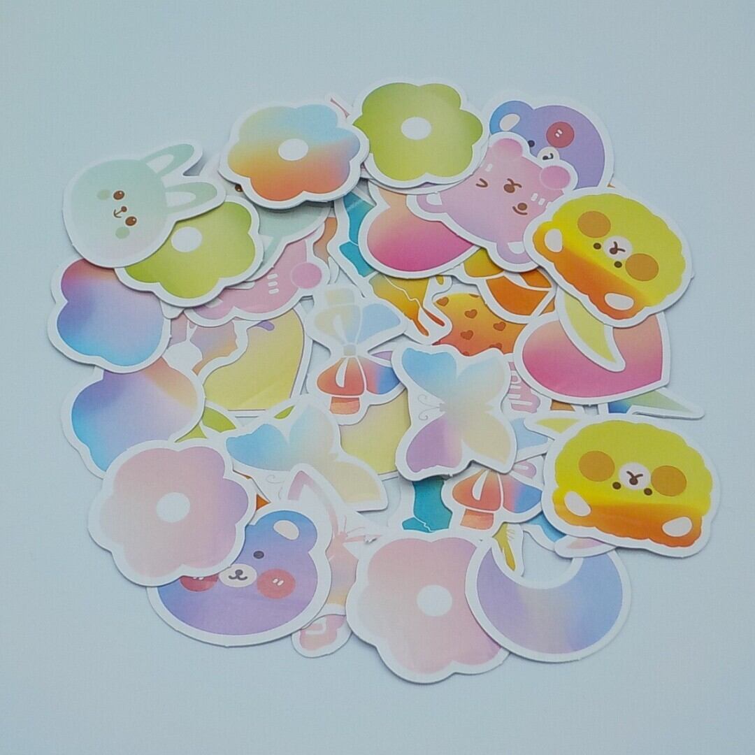 デレコーション系シール 月 蝶 ハート くま うさぎ 星 ゆめかわ ファンシー パステルカラーのかわいいフレークシール スマホやトレカなどのデコに