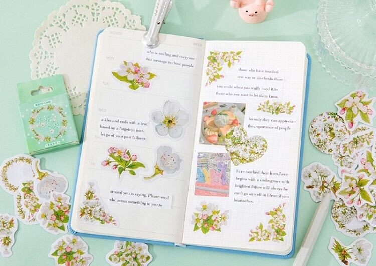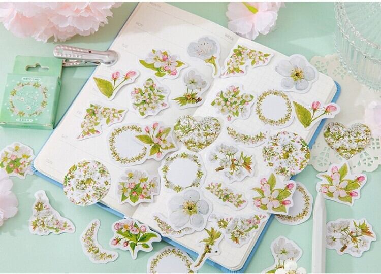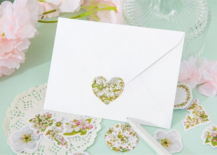 デコレーション系シール リース かわいい 海外 トリコローレカラー 緑白赤三色の爽やかな花のフレークシール お花摘み 日記や手帳のコラージュに