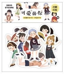 女の子系シール 海外 4頭身 かわいい 子ども カラフルなファッションに包まれた女の子のシール 日記や手帳のコラージュに