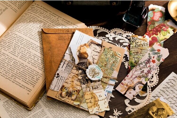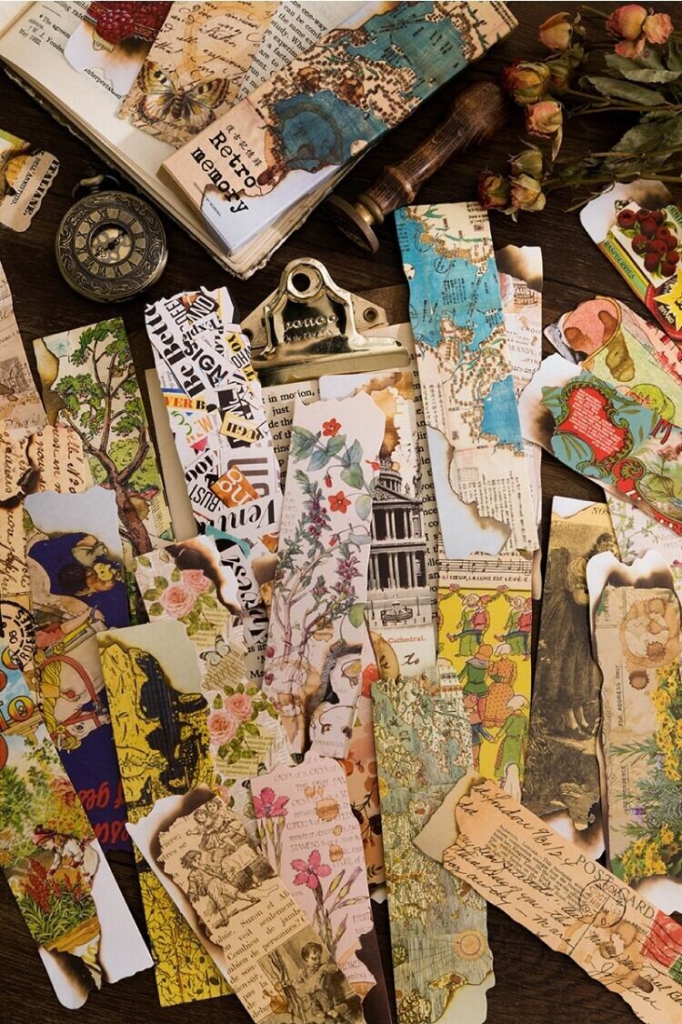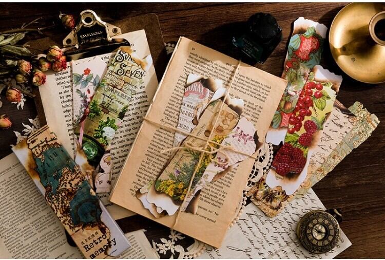 ビンテージ系ブックマーク 海外 地図 花 英文 古い手紙 しおり 童謡 花 焼け残った切れ端のようなブックマーク