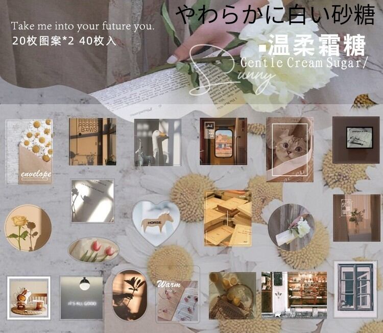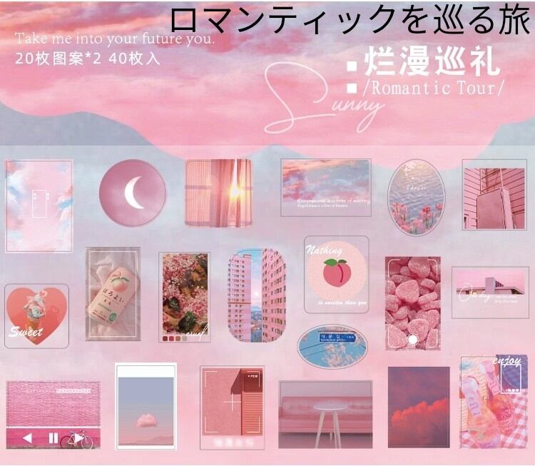 デコレーション系シール 森や谷に夕暮れ響く歌インスタ風 2種類 40枚 海外製 PET 風景写真 インテリア 室内 SNS INS おしゃれなカラーのステッカーシール 大人女子 スマホや家具などのデコに