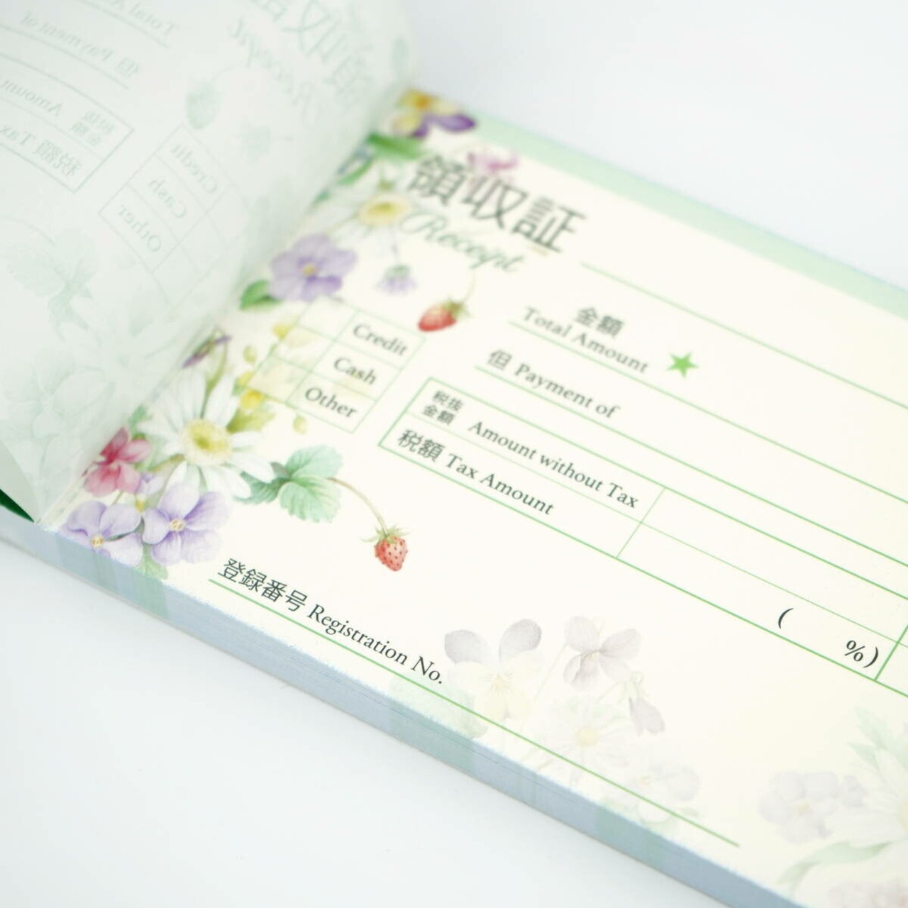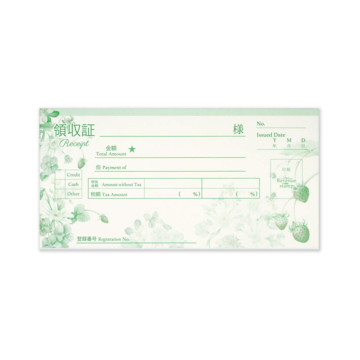 フルーツ系領収書 軽減税率対応 日本製 花 ボタニカル おしゃれないちごの領収書(2枚複写式) レシート ストロベリー かわいい インボイス対応 フリーマーケットやハンドメイド作品の販売などに