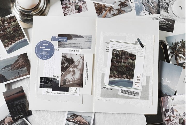 デコレーション系シール この世はロマンティックで美しい 4種類 40枚 海外製 風景写真 花 室内や屋外のおしゃれなステッカーシール 海 建物 緑 英文 日記や手帳のコラージュに