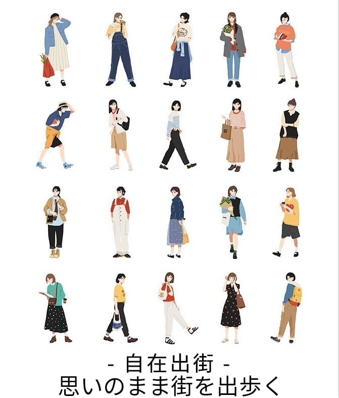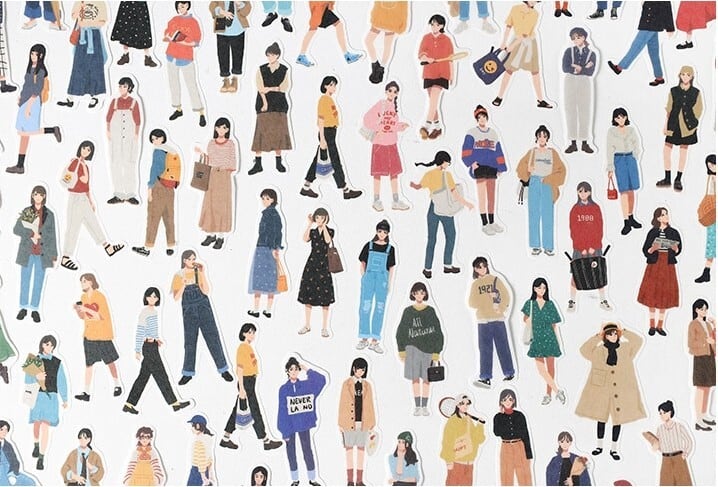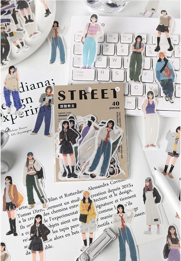 女の子系シール 街角写真の女の子 6種類 40枚 海外製 人型 人物 ストリートで撮影された女の子というテーマで作られたフレークシール おしゃれ ファッション かわいい 日記や手帳のコラージュに