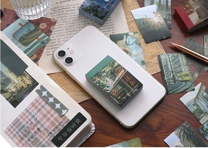 デコレーション系シール 流れ去る光や影シリーズ 4種類 50ページ 風景写真 INS 時のうつろいの儚さを表現した豆本シールブック 部屋 日常 桜 電車 カフェ スイーツ 手帳や日記のコラージュに