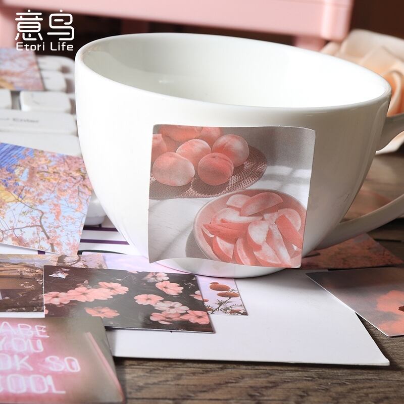 デコレーション系シール 控えめな桜のようなピンク 46枚 海外製 花 ポップかつヴィンテージな風景写真のフレークシール おしゃれ INS かわいい SNSや手帳のコラージュに