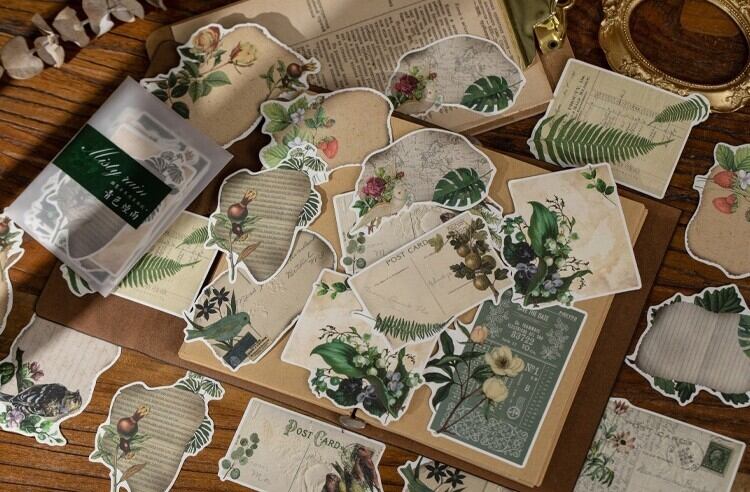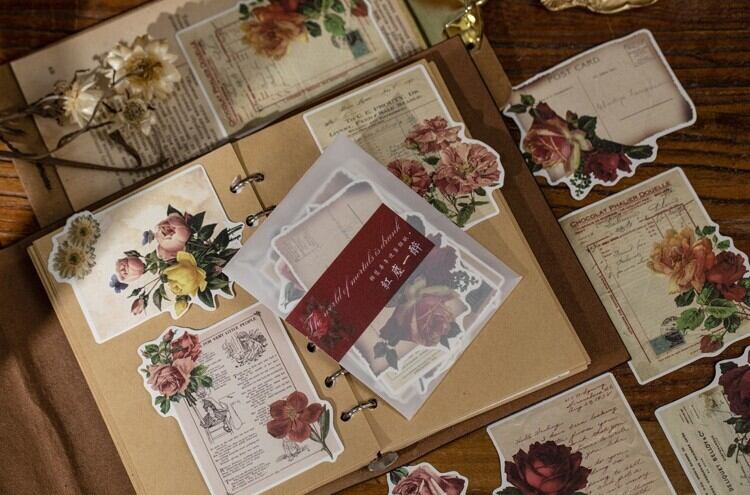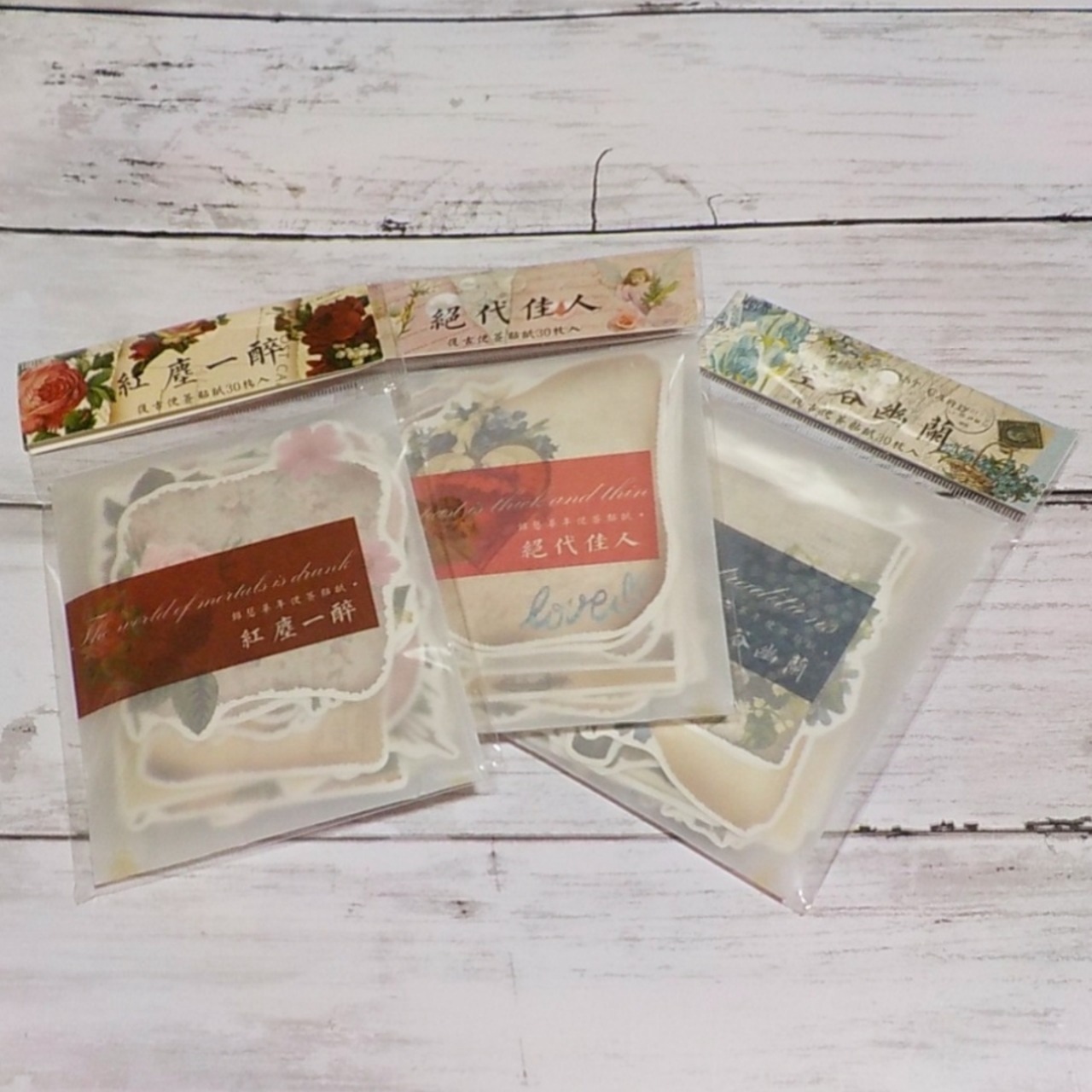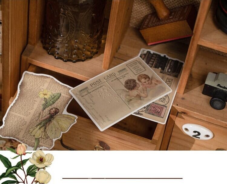 ビンテージ系シール 花盛りメモシール 3種類 30枚 海外製 英文やメモと花、天使を組み合わせたおしゃれなシール 女の子 手紙 書類 各種ジャーナルやコラージュに