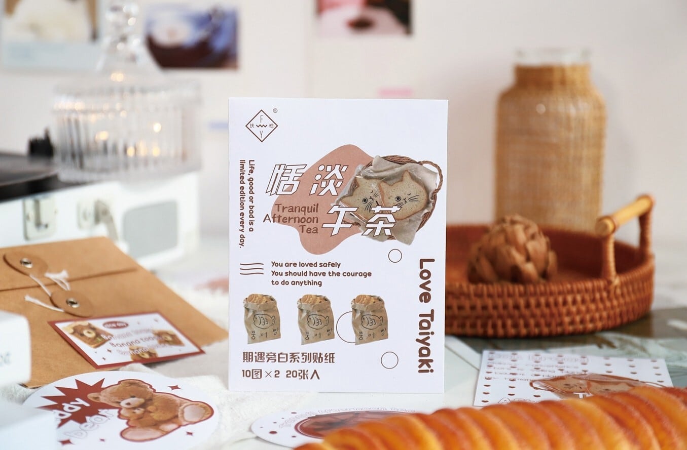 デコレーション系シール 出会いに流れるナレーションシリーズ 2種類 20枚 海外製 スイーツやアイテムがポップなフォントの英文で装飾されたステッカーシール くま ねこ かわいい スマホやケースのデコ、コラージュ素材として