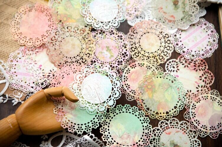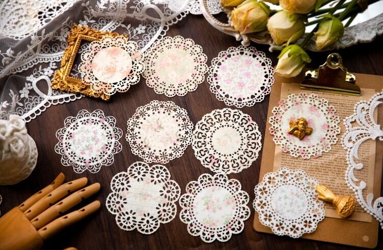 ビンテージ系素材紙 夢のレースシリーズ透かし彫り素材紙 全6種類 20枚 海外製 様々な模様の入ったレースの素材紙 デコレーションペーパー 英文 花柄 各種ジャーナルやコラージュ素材として